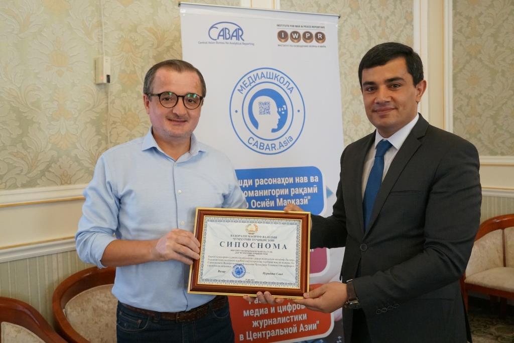 Дар доираи татбиқи лоиҳаи “Рушди расонаҳои ҷадид ва журналистикаи рақамӣ дар Осиёи Марказӣ” Намояндагии созмони байналхалқии “Институти инъикоси ҷанг ва сулҳ дар Тоҷикистон” (IWPR) дар ҳамкорӣ бо Вазорати маориф ва илми Ҷумҳурии Тоҷикистон рӯзҳои 20-25-уми августи соли 2019 дар Маҷмааи истироҳатию фароғатии “Кохи Малика”-и ноҳияи Варзоб барои омӯзгорони факултетҳои журналистика ва ихтисосҳои журналистии муассисаҳои таҳсилоти олии касбӣ тренинги омӯзишӣ доир намуд, ки дар он омӯзгорони Донишгоҳи миллии Тоҷикистон, Донишгоҳи славянии Тоҷикистон-Россия, Донишгоҳи давлатии Бохтар ба номи Н.Хусрав, Донишгоҳи давлатии Хуҷанд ба номи академик Б.Ғафуров ва Донишгоҳи давлатии Хоруғ ба номи М.Назаршоев ширкат варзиданд.