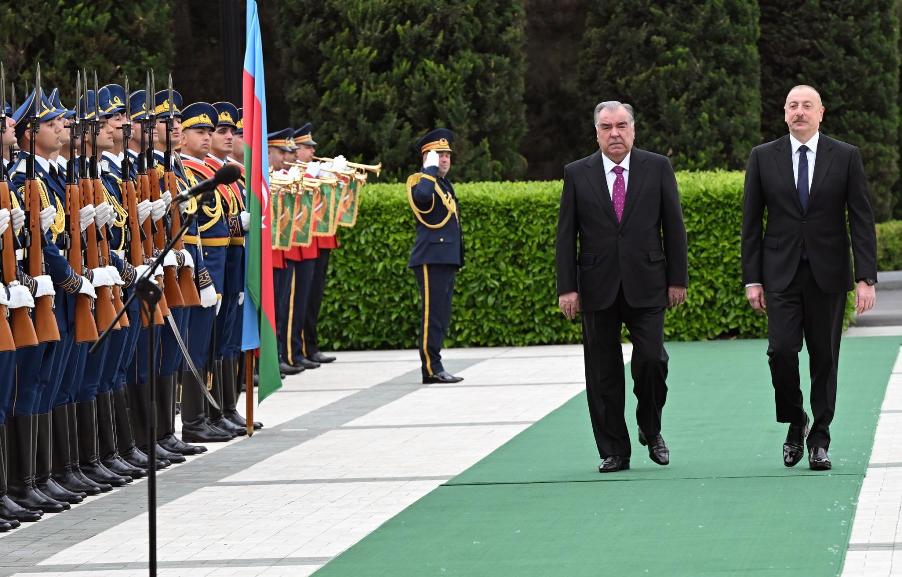 Сарвари давлати Тоҷикистон муҳтарам Эмомалӣ Раҳмонро Президенти Ҷумҳурии Озарбойҷон муҳтарам Илҳом Алиев пешвоз гирифта, ба болои шоҳсуфаи ифтихорӣ даъват намуд.
