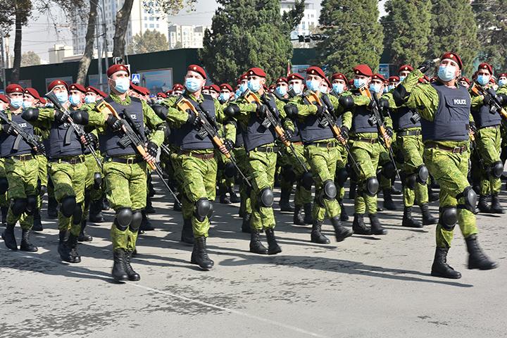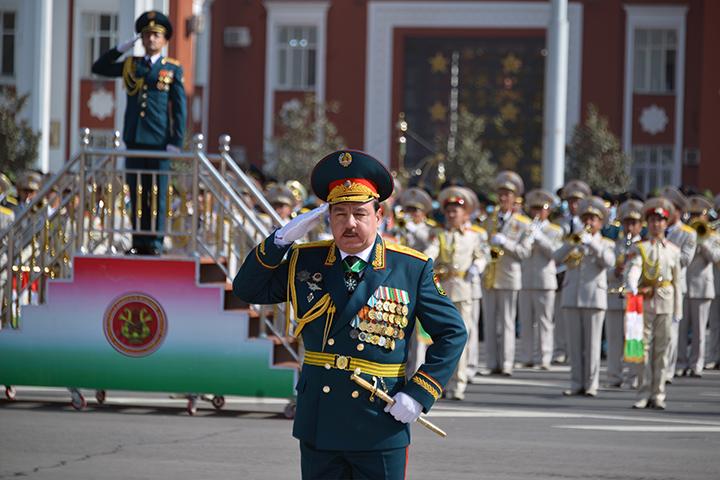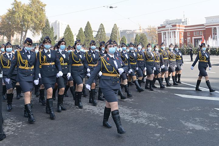 Дар ин ҷо роҳбарони сохторҳои қудратӣ ва ҳимояи ҳифзи ҳуқуқу тартиботи мамлакат - Вазири мудофиа, Вазири корҳои дохилӣ, Раиси Кумитаи давлатии амнияти миллӣ, Фармондеҳи Горди миллӣ, Раиси Кумитаи ҳолатҳои фавқулодда ва мудофиаи гражданӣ, Фармондеҳи Қӯшунҳои сарҳадӣ ва дигар мақомоти марбута низ бо либоси ҷашнӣ саф кашиданд.