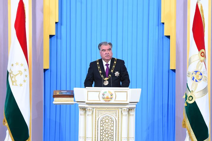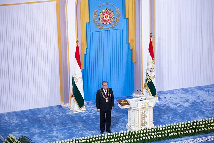 Маросими ба иҷрои вазифа шурӯъ намудани Президенти кишвар дар толори оинабандии Қасри Миллат, бо супурдани шаҳодатномаи Президенти Ҷумҳурии Тоҷикистон ба Эмомалӣ Раҳмон аз ҷониби Раиси Комиссияи марказии интихобот ва раъйпурсии Тоҷикистон Бахтиёр Худоёрзода оғоз ёфт.