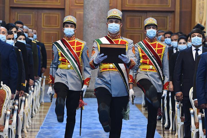 Сипас, Конститутсияи Ҷумҳурии Тоҷикистон аз ҷониби сипоҳиёни Горди Миллии Ҷумҳурии Тоҷикистон зери оҳанги мутантани фахрӣ ва марши махсус ба толор ворид карда шуда, дар паҳлӯи рости минбар гузошта шуд.