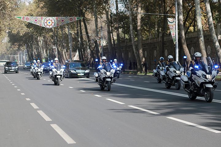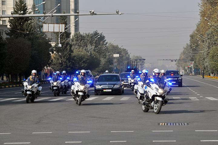Президенти Ҷумҳурии Тоҷикистон муҳтарам Эмомалӣ Раҳмон бо мошин хамроҳи эскорти мотосиклҳо ба хиёбони Рудакӣ баромаданд.