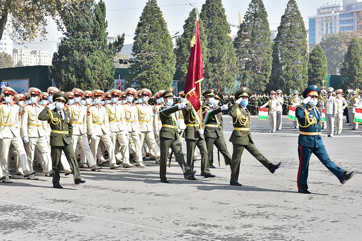 Онҳо бо қадамзании низомӣ аз назди минбар гузашта, бори дигар садоқати худро ба Президент ва давлати Тоҷикистон таъкид намуданд. Ин паради бошукӯҳ, ҳамчунин нишони омодагии доимии Қувваҳои Мусаллаҳи кишвар баҳри ҳифзи музаффариятҳои истиқлоли давлатии Тоҷикистон, Ваҳдати миллӣ ва ҳаёти осоиштаи мардуми шарафманди Тоҷикистон аст.
