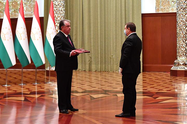 Ҳамзамон бо супурдани шаҳодатнома Нишони Президенти Ҷумҳурии Тоҷикистонро Раиси Суди конститутсионии Тоҷикистон Ашурзода Абдулҳафиз ба Эмомалӣ Раҳмон супорид.