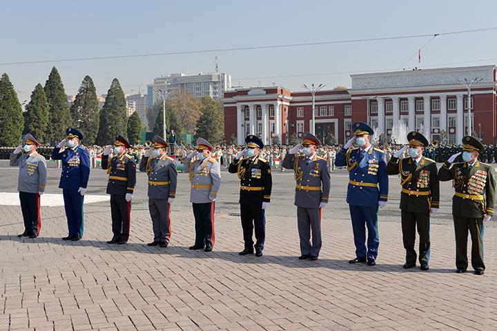 Дар майдони Дӯстӣ ҷузъу томҳои Қувваҳои Мусаллаҳи Ҷумҳурии Тоҷикистон саф ороста буданд.