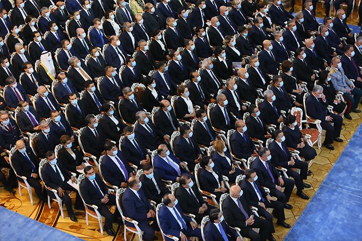 Дар толор ҳамчунин аъзои Ҳукумати мамлакат, роҳбарони намояндагиҳои дипломатии кишварҳои хориҷӣ, собиқадорони ҷангу меҳнат ва намоядагони аҳли ҷомеа ҳузур доштанд.