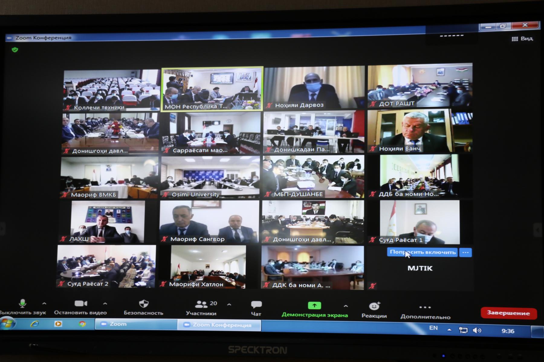 Дар кори ҷаласаи мушовара О.Мардов-сардори раёсати маорифи ВМКБ, О.Каримзода-сардори раёсати маорифи вилояти Суғд ва М.Зувайдуллозода-директори Мактаби байналмилалии Президентӣ дар музокираи онлайнӣ ширкат варзида, ҳисоботи вазорат «Оид ба ҷамъбасти фаъолияти Вазорати маориф ва илми Ҷумҳурии Тоҷикистон дар нуҳ моҳи соли 2020 ва вазифаҳо барои давоми соли 2020»-ро қаноатбахш арзёбӣ намуданд.