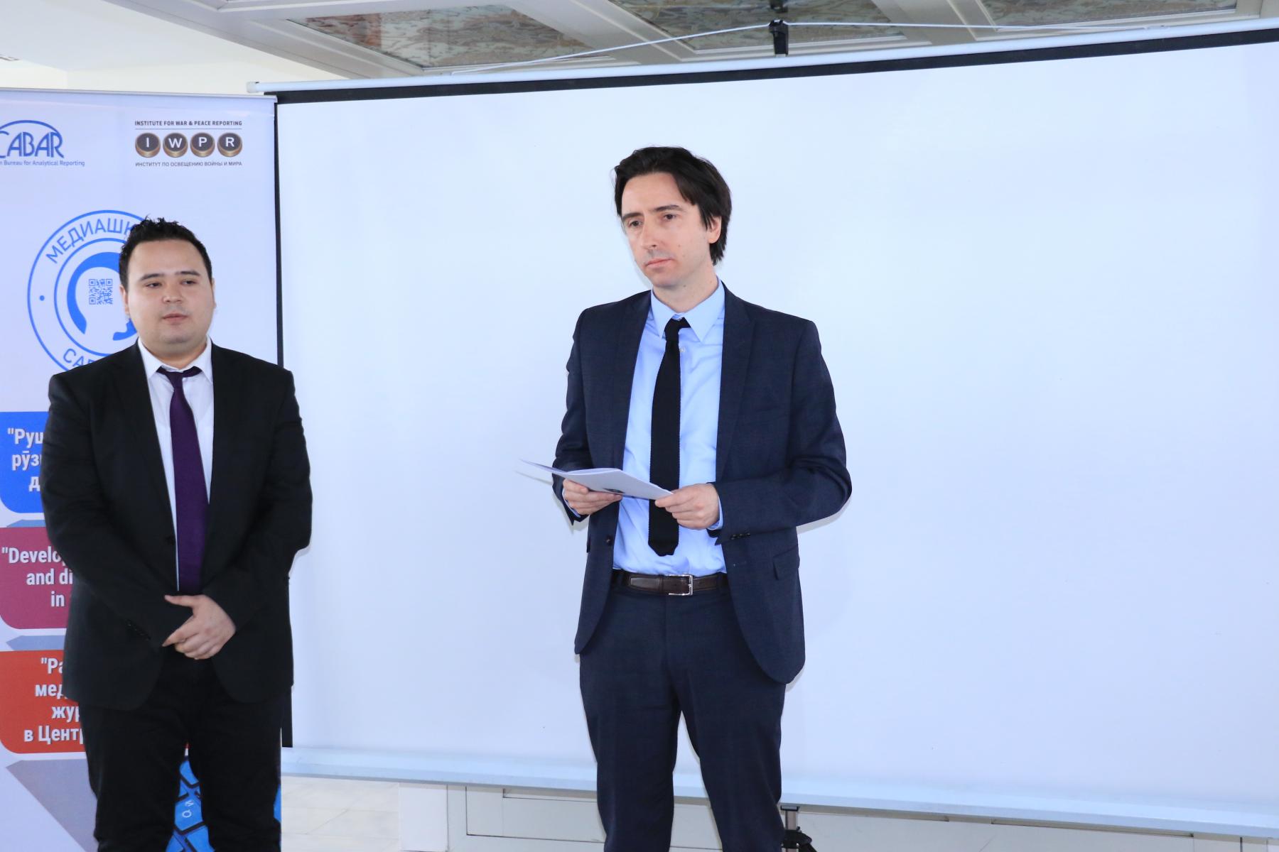 Дар оғози муаррифӣ Директори Намояндагии созмони байналмилалии «Институти инъикоси ҷанг ва сулҳ» дар Тоҷикистон Абахон Султоназаров баромад намуда, ҳадаф аз баргузории чорабинии мазкурро дастрасӣ ва истифодаи воситаҳои нави иттилоотӣ дар фаъолияти рӯзноманигорон ва дастрас будани маводи журналистӣ ба хонандагон, шунавандагон ва бинандагони воситҳои ахбори омма арзёбӣ намуд.