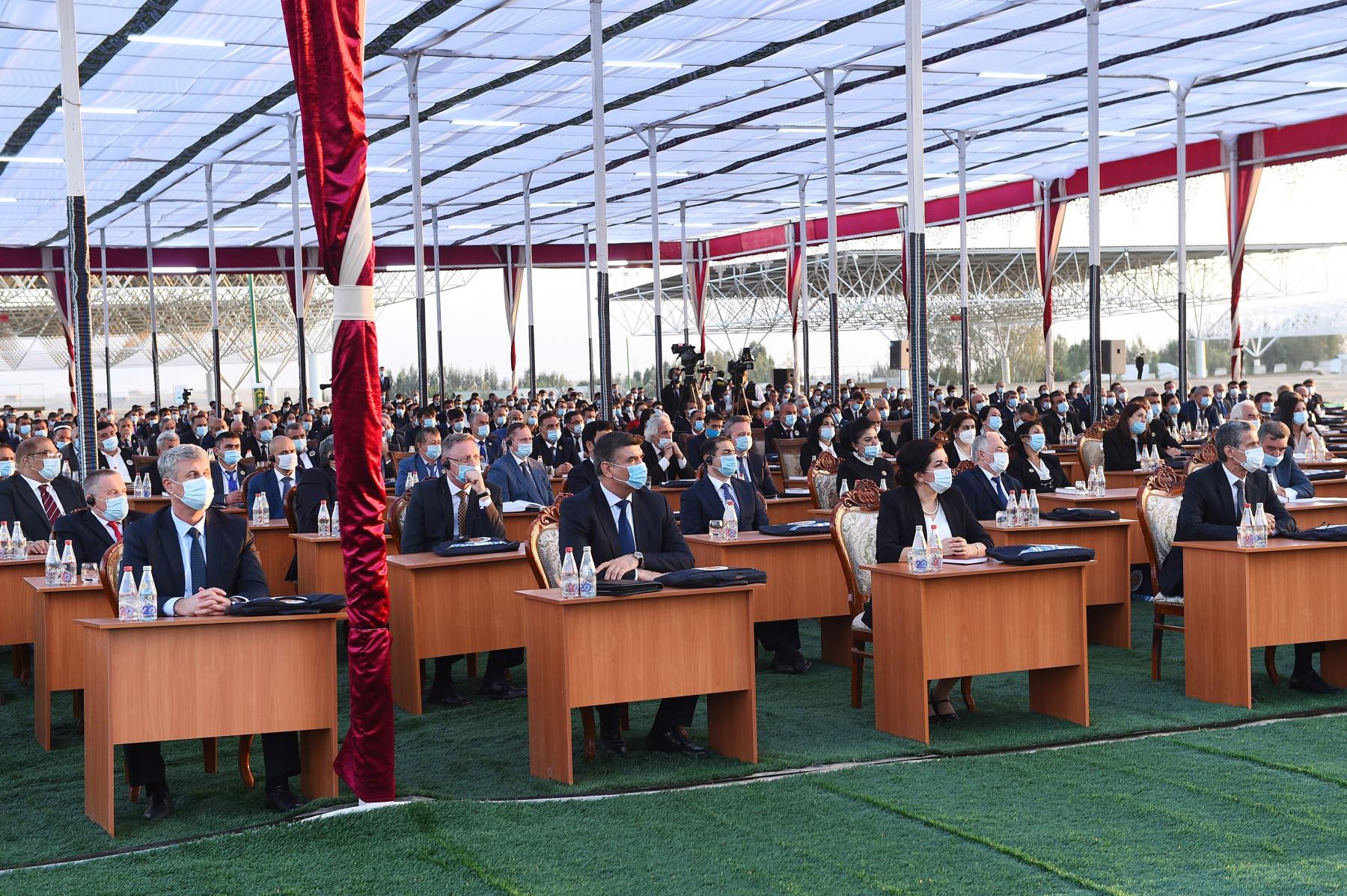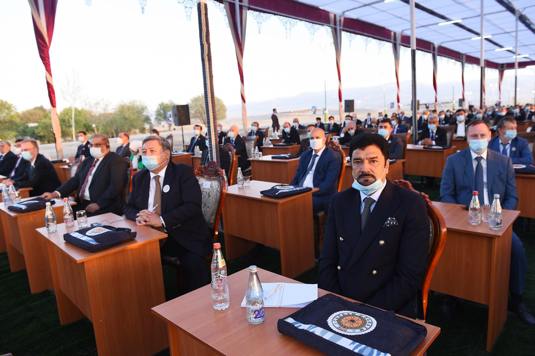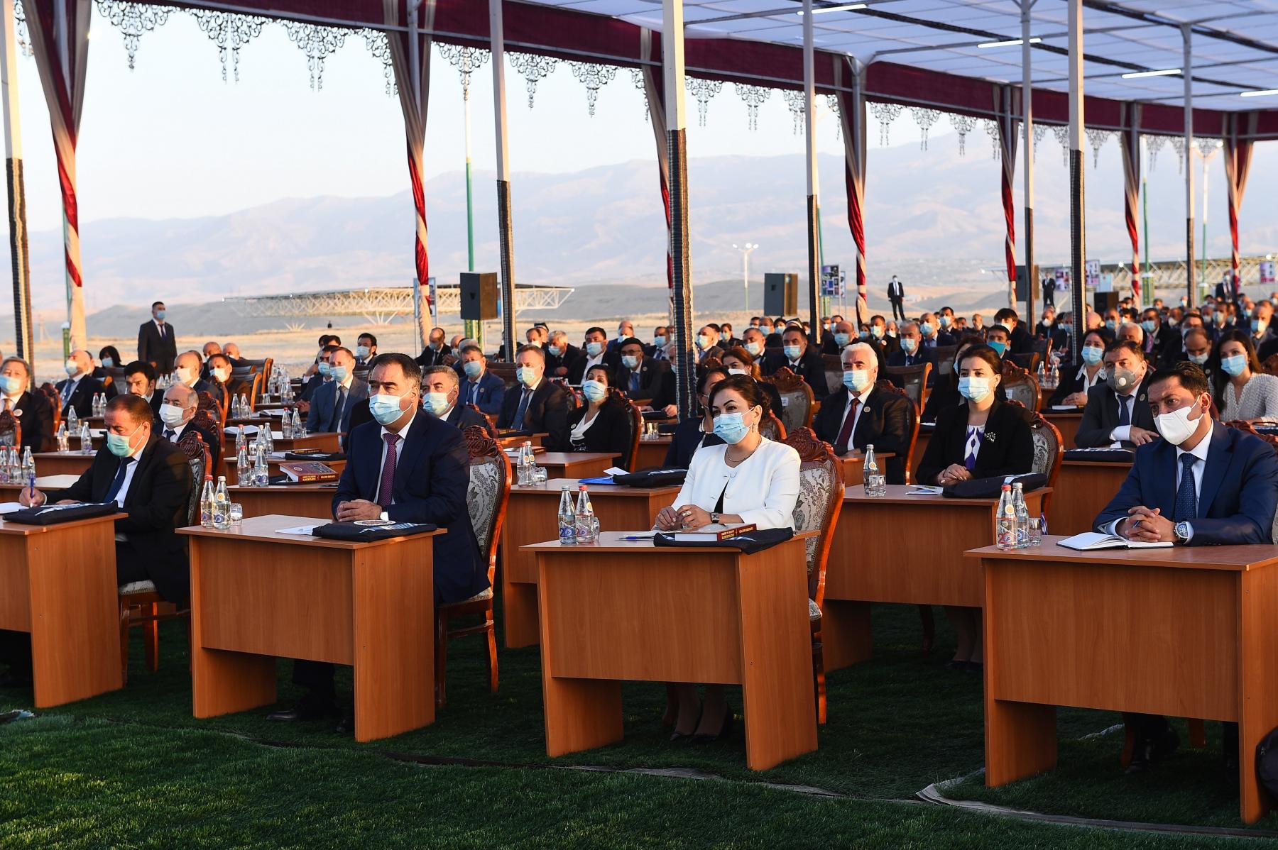 Нахуст Сарвари давлат муҳтарам Эмомалӣ Раҳмон ҳамаи ҳозирин ва тамоми мардуми кишварро ба муносибати 29 - солагии истиқлоли давлатӣ ва 5500-солагии Саразм табрику таҳният гуфтанд.