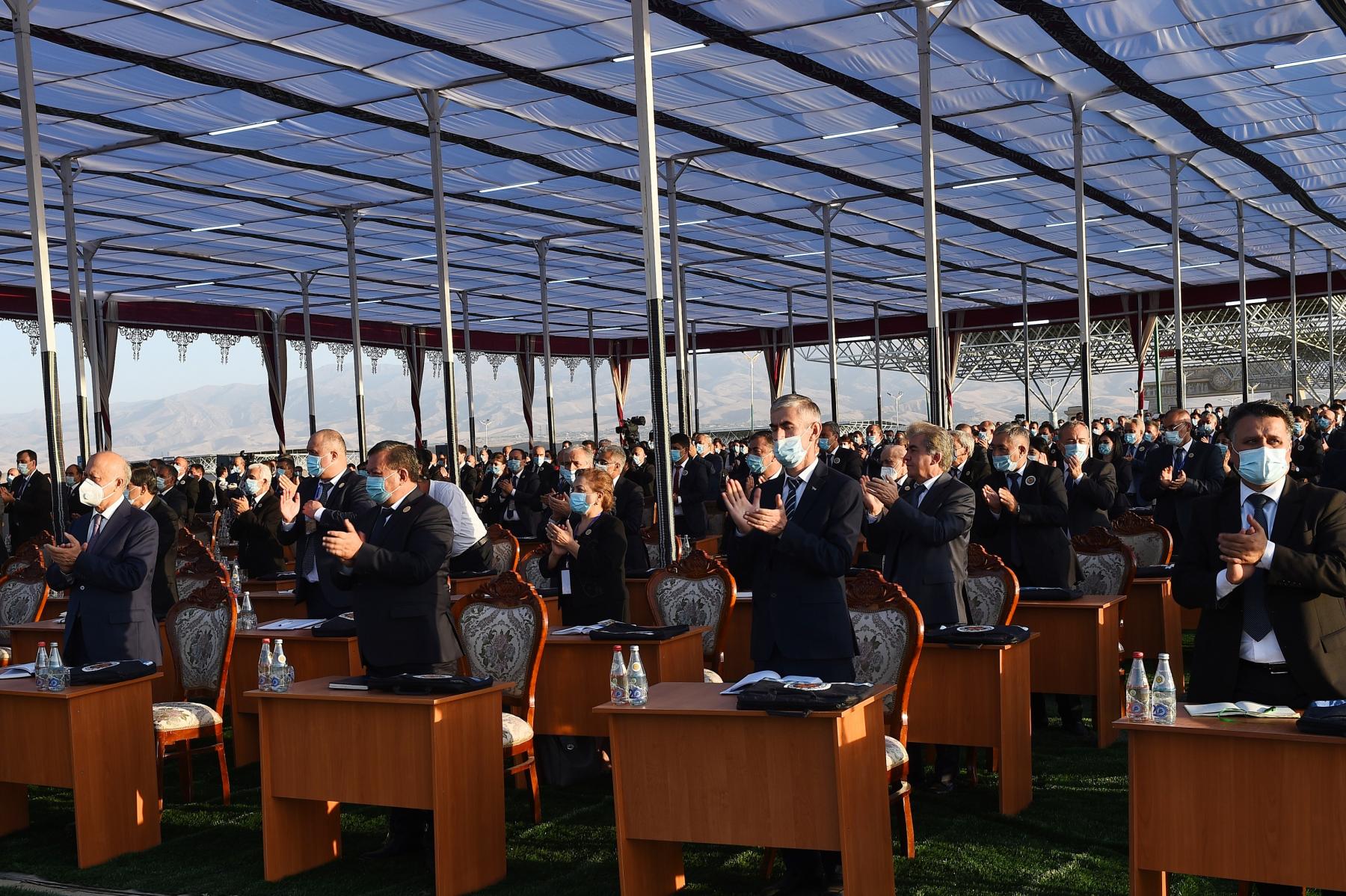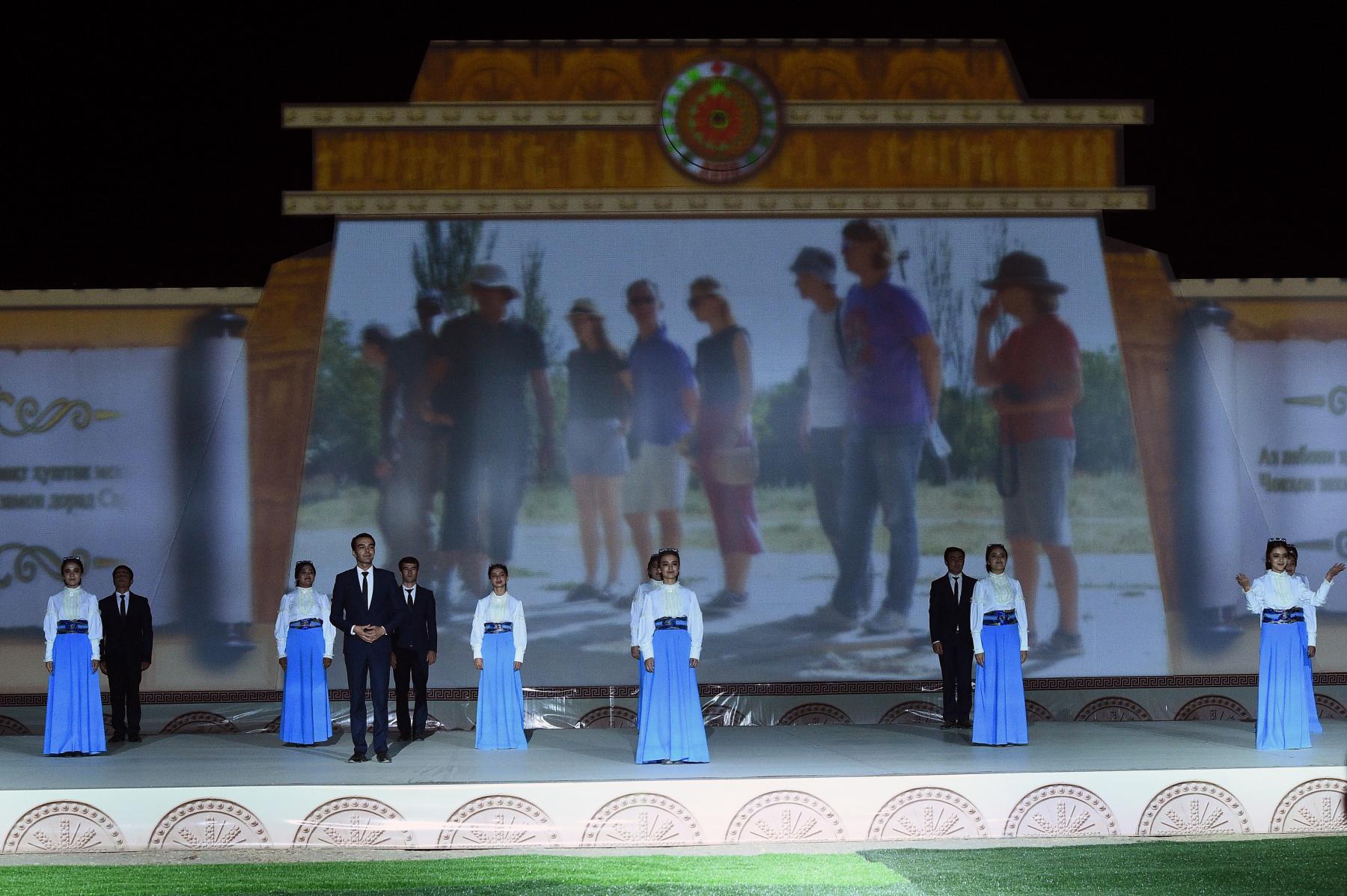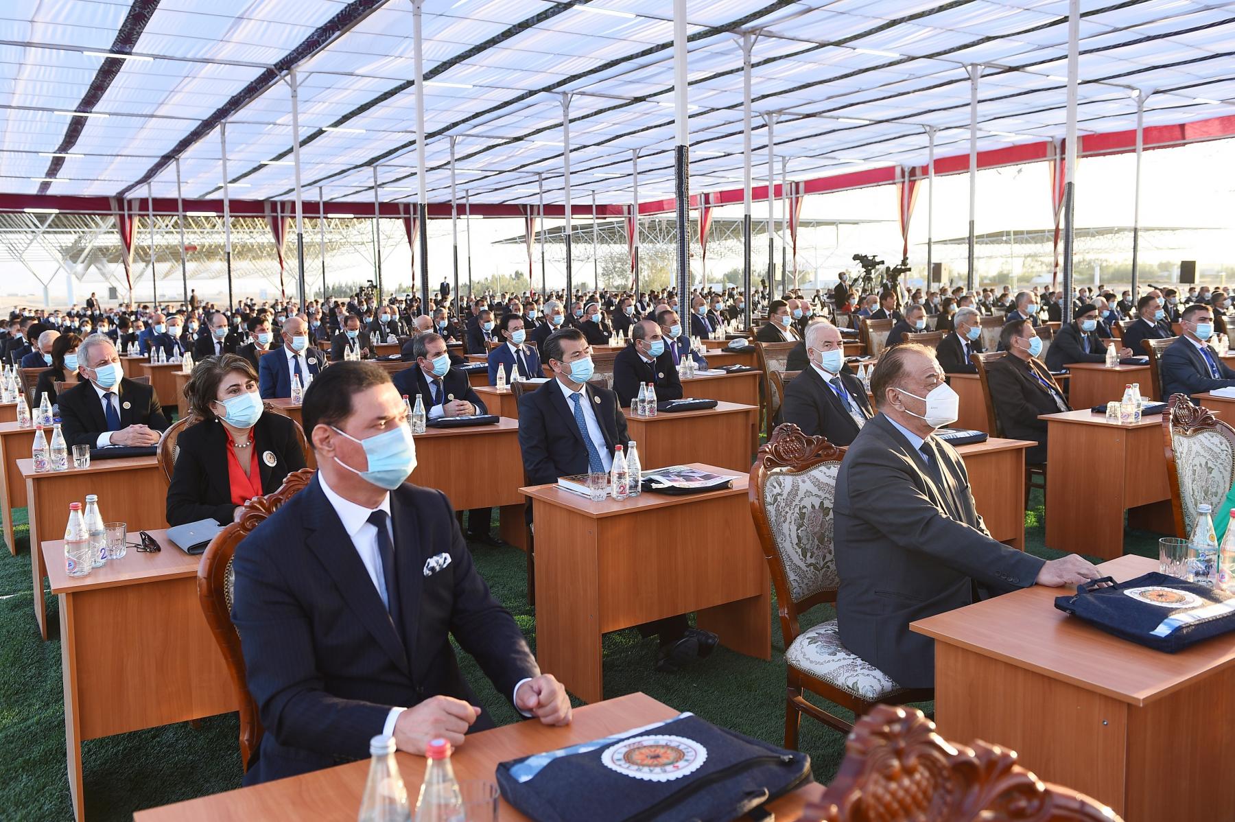 Нахуст Сарвари давлат муҳтарам Эмомалӣ Раҳмон ҳамаи ҳозирин ва тамоми мардуми кишварро ба муносибати 29 - солагии истиқлоли давлатӣ ва 5500-солагии Саразм табрику таҳният гуфтанд.
