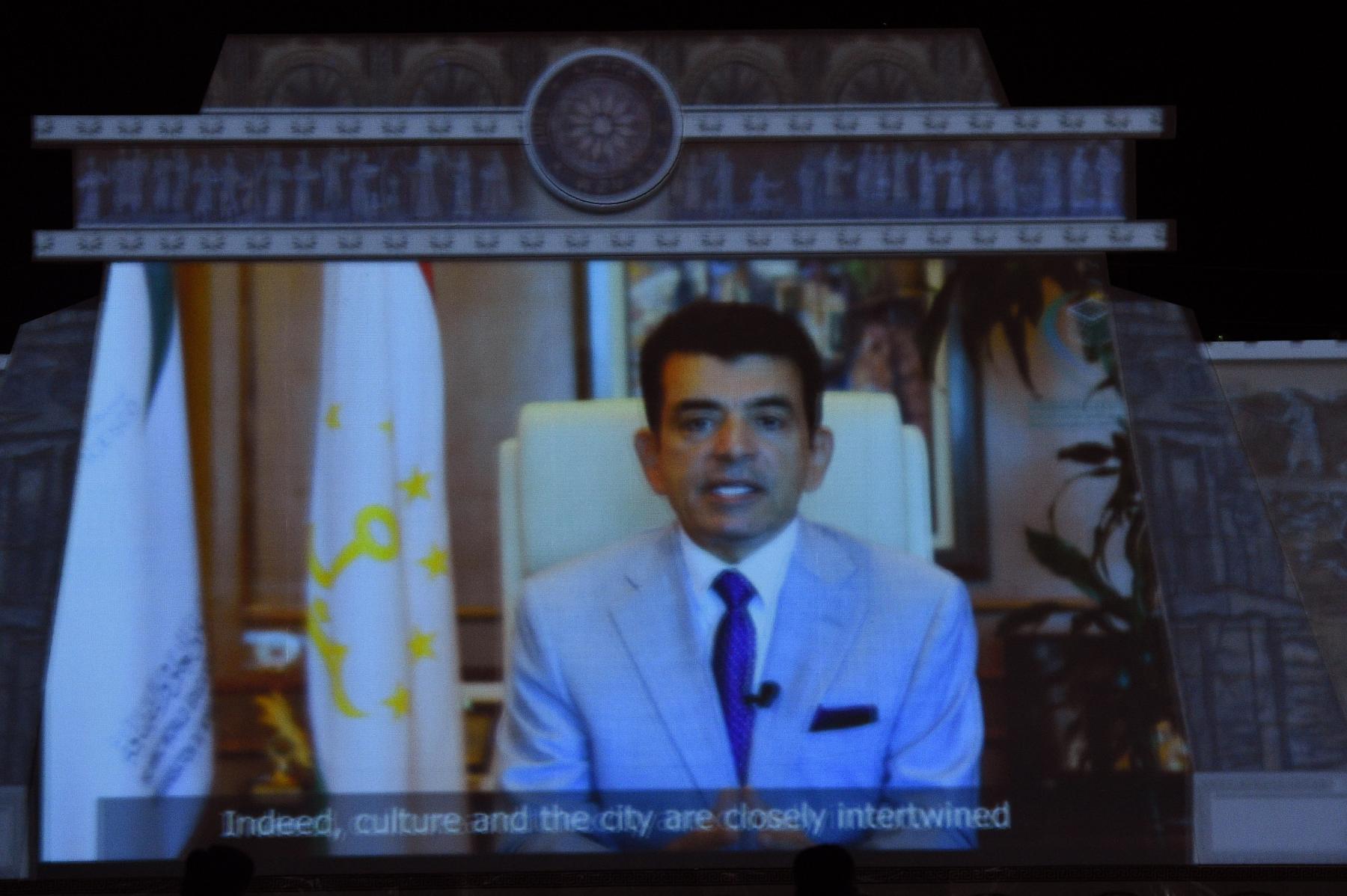 Нахуст ба самъи ҳозирин табрикоти видеоии Директори генералии Юнеско хонум Одрӣ Озуле ва директори генералии ИСЕСКО Салим бини Муҳаммад ал Малик ба муносибати дар сатҳи ҷаҳонӣ бошукуҳ таҷлил кардани ҷашни 5500 - солагии Саразми бостон пешкаш гардид.