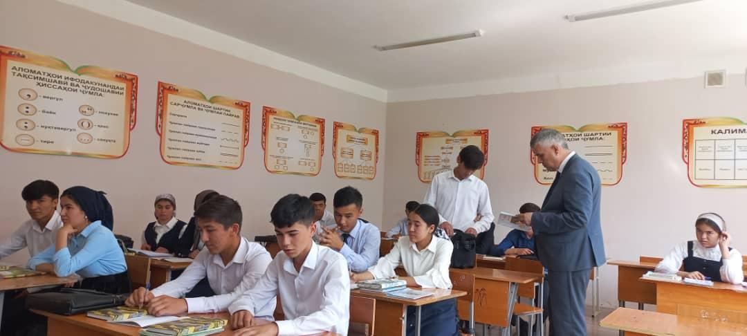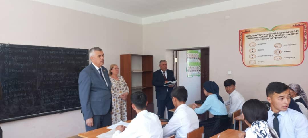 Муовини вазири маориф ва илм бо рафти дарсгузарӣ дар синфхонаҳо шинос гардид. Ҳангоми ворид шудан ба синфи 9"А" иттилоъ дода шуд, ки аз 28 нафар хонанда 24 нафар дар синф ҳузур дорад. Вазъи рӯзномадории хонандагон чандон қонеъкунанда набуда, рӯзномаҳои онҳо ҳафтаҳо боз аз ҷониби падару модарон имзо нагардидааст. Масъалаи дигар ин наовардани китобҳои дарсӣ бо худ буд. Новобаста ба оне ки тибқи ҷадвали имрӯз хонандагон 5 соат дарс доштанд, ҳамагӣ 1 нафар хонанда 3 китоб, 3 нафар 2 китоб ва баъзеҳо умуман бо худ китоб наовардаанд. Дар синфи 11"Б" бошад аз 28 нафар хонанда ҳамагӣ 16 нафар иштирок дошта, дар дарси забони англисӣ (омӯзгор Тағоев Абдумуталиб) ягон нафар бо худ китоби дарсӣ наовардааст. Ҳамагӣ чанд нафар хонанда бо худ 1 ё 2 номуй китоби дарсӣ оварда, 9 нафар бе китоб ба дарс ҳозир шудаанд, ҳол он ки бо китобҳои дарсӣ таъмин гардидаанд. Дар маҷмӯъ аз 85 нафар хатмкунандагони синфи 11 ҳамагӣ 56 нафар ба Маркази миллии тестии назди Президенти Ҷумҳурии Тоҷикистон ҳуҷҷат супоридаанд.