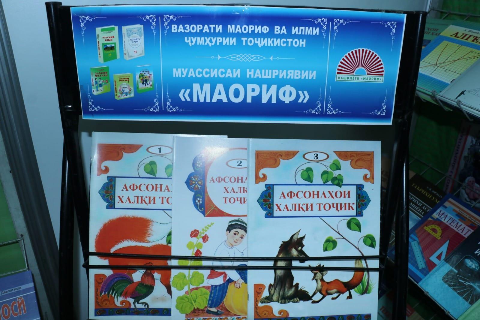 Дар намоишгоҳи мазкур зиёда аз 130 номгӯй китоби дарсӣ, беш аз 60 номгӯй китоби бадеӣ ва дастурҳои таълимӣ, ки бо тамғаи Муассисаи нашриявии “Маориф” аз тариқи матбааву чопхонаҳои ватанӣ бо сифати баланд нашр гардидаанд, ба намоиш гузошта шудаанд.