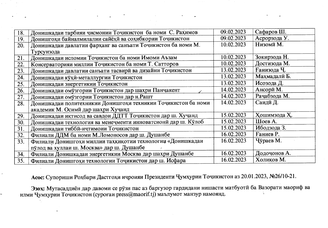 НАҚШАИ ТАШКИЛ ВА ГУЗАРОНИДАНИ НИШАСТҲОИ МАТБУОТӢ ДАР МУАССИСАҲОИ ТАҲСИЛОТИ ОЛИИ КАСБӢ