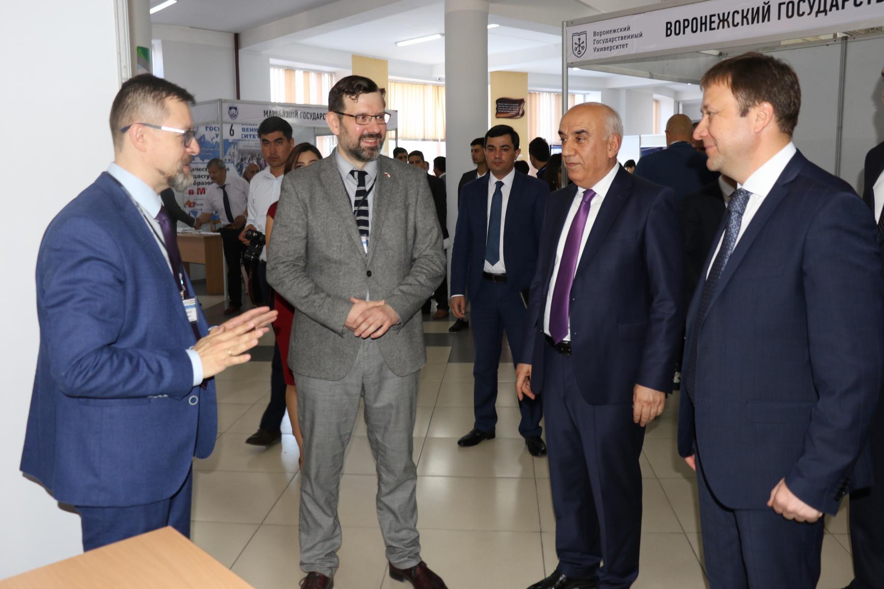 Дар доираи намоишгоҳ-ярмаркаи мазкур, дар толори Шӯрои олимони донишгоҳ мулоқоти Имомзода М.С. – вазири маориф ва илми Ҷумҳурии Тоҷикистон бо И.С. Лякин-Фролов - сафири фавқулода ва мухтори Федератсияи Россия дар Ҷумҳурии Тоҷикистон Шведов П.А. – муовини Маркази илм ва фарҳанги Россия “Россотрудничиества”-и Федератсияи Россия, Иванов И.С. - директори намояндагии Маркази илм ва фарҳанги Россия «Россотрудничество» дар Душанбе Бурлко И Е. – котиби якуми сафорат Федератсияи Россия дар Ҷумҳурии Тоҷикистон баргузор гардид, ки дар он ҷонибҳо вобаста ба ҳамкориҳои ҷойдоштаи кишварҳо дар самти маориф ва илм ибрози назар намуданд. Аз ҷумла, зикр гардид, ки дар доираи ҳамкориҳои муштарак бояд ҷиҳати бо сифати баланд сохта ба истифода додани мактабҳои русӣ, таъмини муассисаҳои русзабон бо омӯзгорони варзида ва китобҳои дарсию бадеӣ, такмили ихтисоси омӯзгорон, вусъат бахшидани ҳамкориҳо миёни муассисаҳои таҳсилоти олии касбии ҳарду кишвар, татбиқи босамари барномаҳои давлатӣ дар самти омӯзиш ва такмили забони русӣ чораҳои зарурӣ андешида шавад.