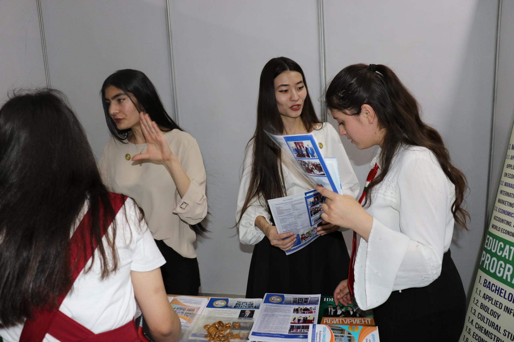 Сипас, дар саҳни донишгоҳ бо иштирокдорони намоишгоҳ-хонандагони муассисаҳои таҳсилоти умумӣ, довталабон ва волидайн мулоқоти намояндагони Вазорати маориф ва илм ва Маркази илм ва фарҳанги Россия “Россотрудничество” баргузор гардида, бо буридани лентаи рамзӣ иштирокдорон аз намоишгоҳ дидан карданд.