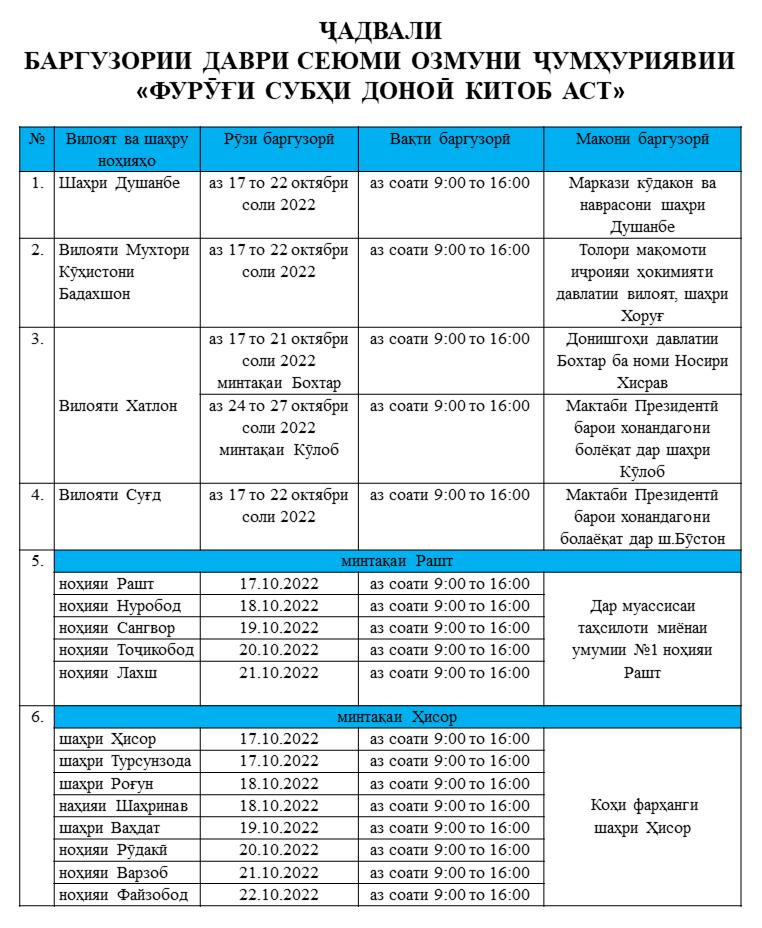Даври сеюми озмуни ҷумҳуриявии «Фурӯғи субҳи доноӣ китоб аст» тибқи ҷадвали замимашуда баргузор мегардад.