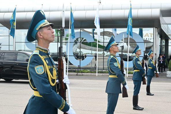 Дар фурудгоҳи байналмилалии Нурсултон Назарбоев Президенти кишвар муҳтарам Эмомалӣ Раҳмонро Сарвазири Ҷумҳурии Қазоқистон Олжас Бектенов ва дигар намояндагони воломақом гарму самимӣ истиқбол гирифтанд.