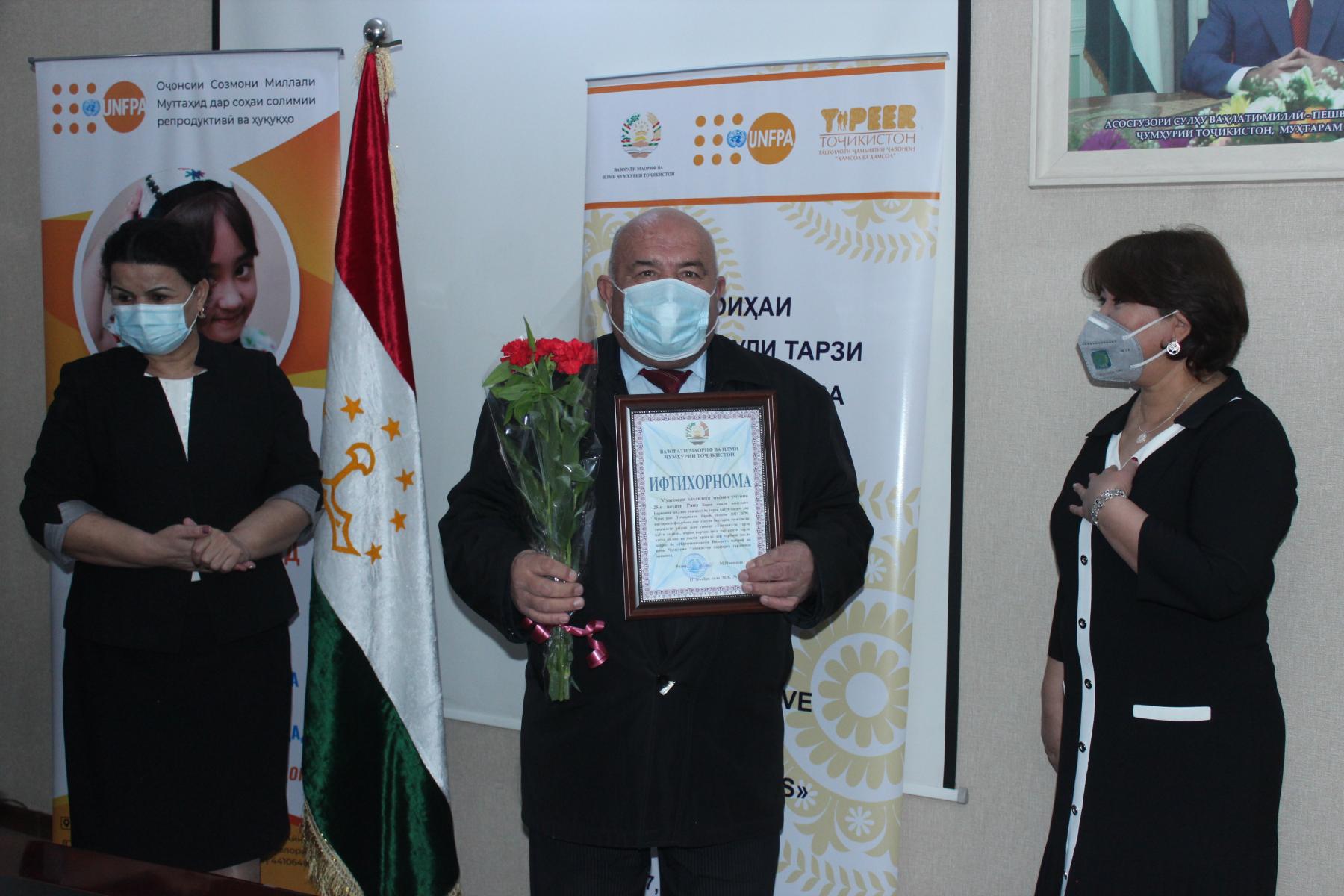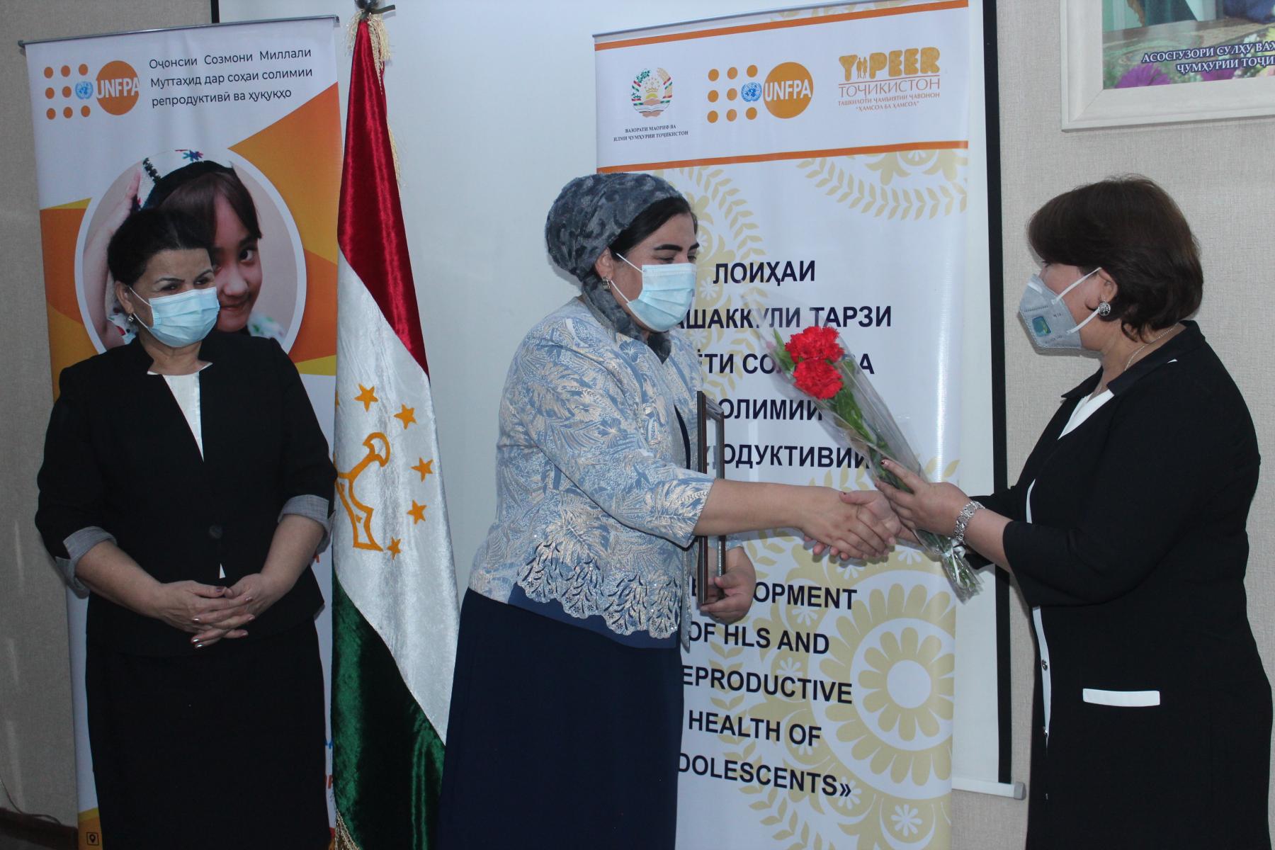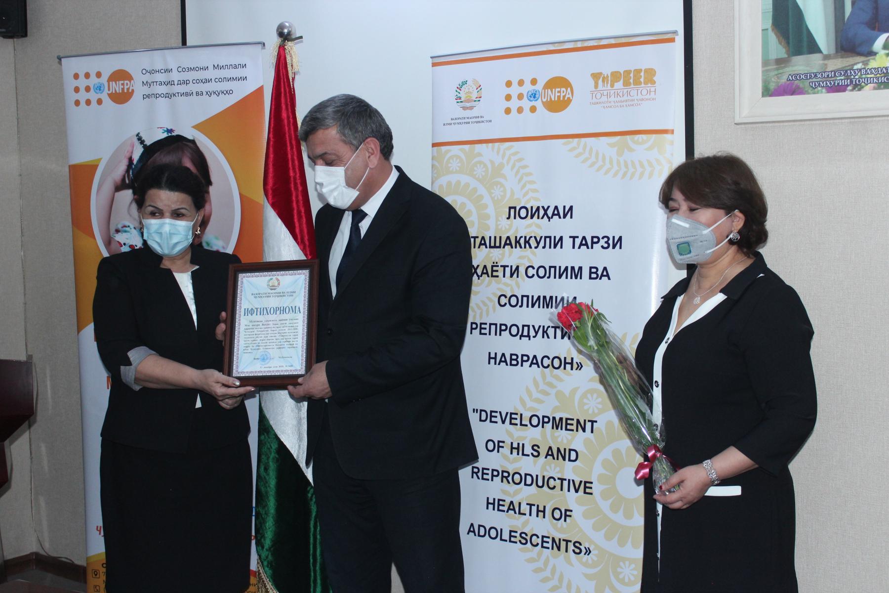 25-уми декабри соли ҷорӣ дар Вазорати маориф ва илми Ҷумҳурии Тоҷикистон бо иштироки Латофат Назирӣ-муовини вазири маориф ва илм, намояндагони Хазинаи нуфуси аҳолии Созмони Милали Муттаҳид (ЮНФПА) ва ташкилоти ҷамъиятии “Ҳамсол ба ҳамсол” маросими туҳфасупорӣ ба ғолибони озмуни беҳтарин муассисаи таҳсилоти умумӣ зери унвони «Ташаккули тарзи ҳаёти солим» баргузор гардид.