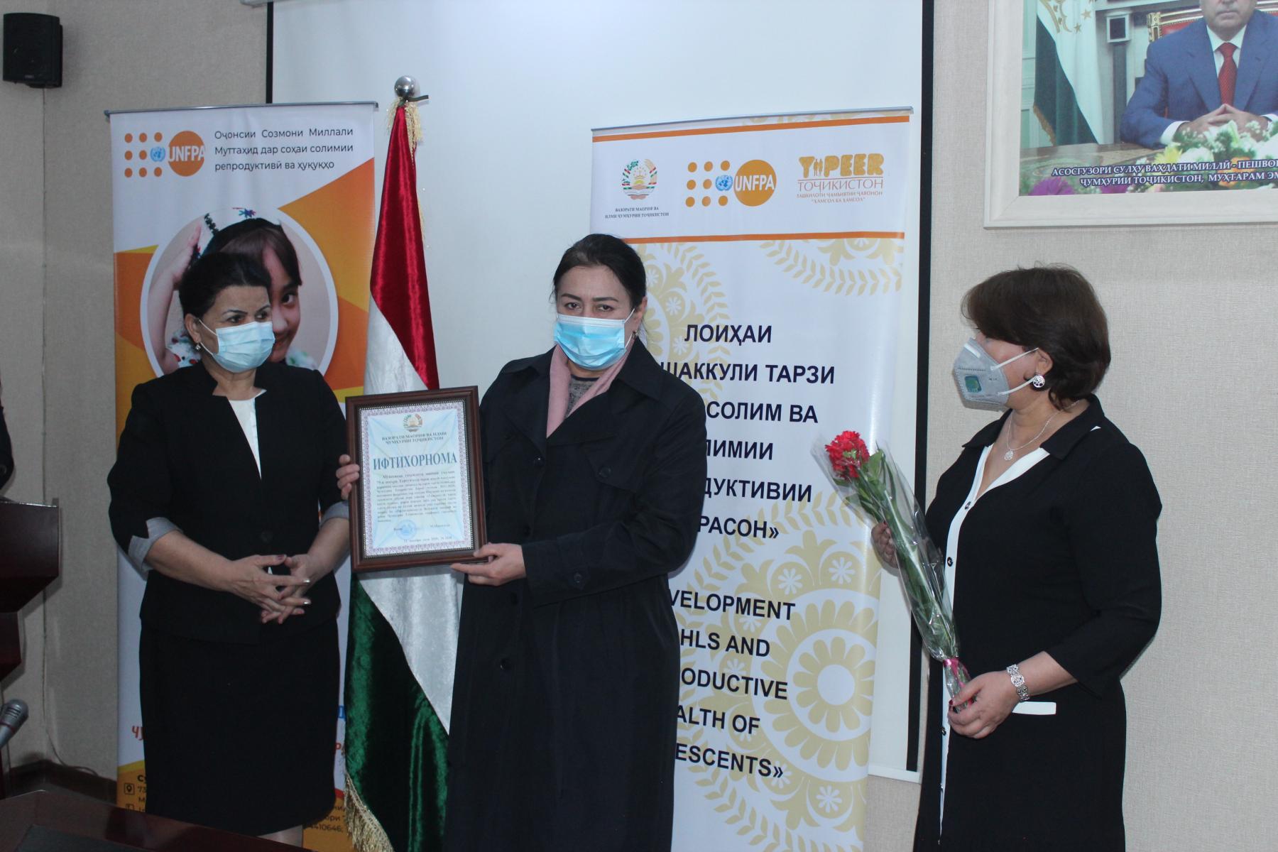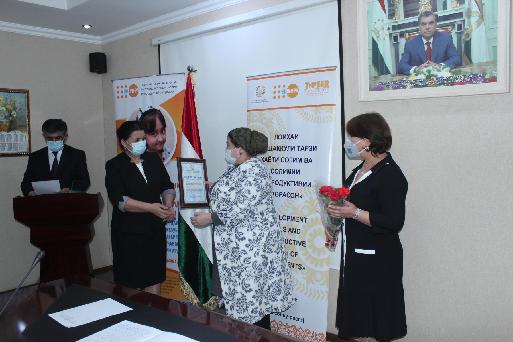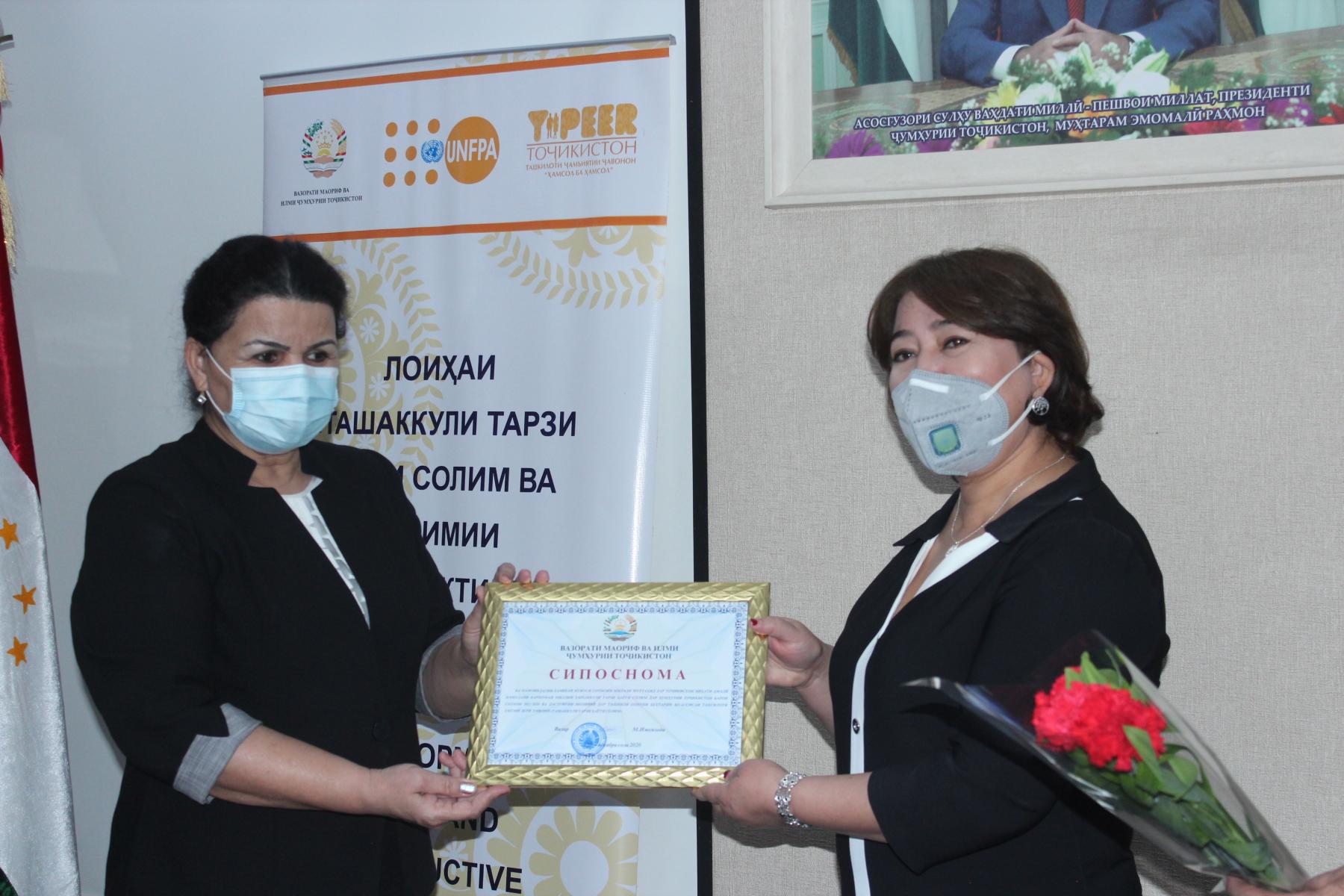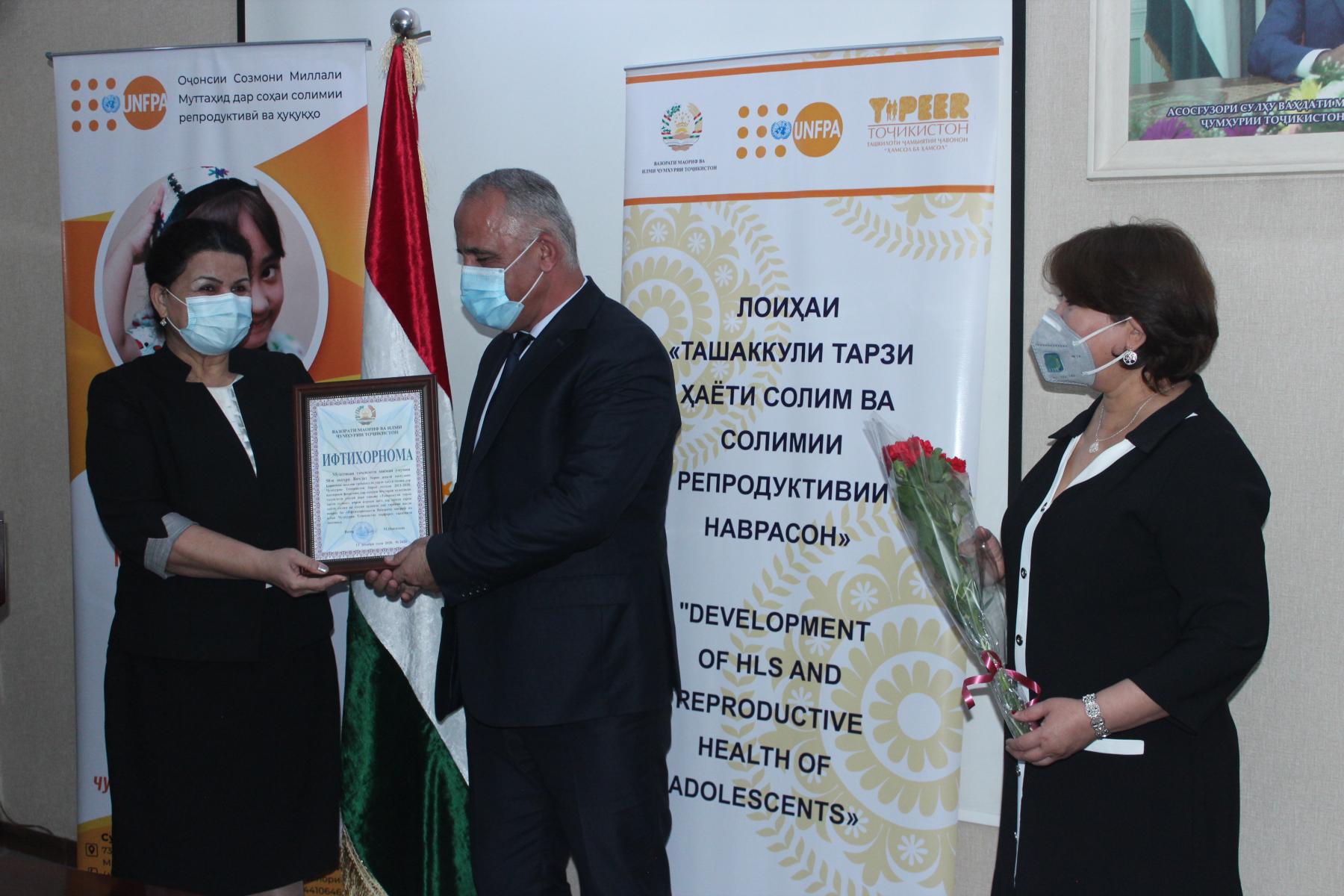 25-уми декабри соли ҷорӣ дар Вазорати маориф ва илми Ҷумҳурии Тоҷикистон бо иштироки Латофат Назирӣ-муовини вазири маориф ва илм, намояндагони Хазинаи нуфуси аҳолии Созмони Милали Муттаҳид (ЮНФПА) ва ташкилоти ҷамъиятии “Ҳамсол ба ҳамсол” маросими туҳфасупорӣ ба ғолибони озмуни беҳтарин муассисаи таҳсилоти умумӣ зери унвони «Ташаккули тарзи ҳаёти солим» баргузор гардид.