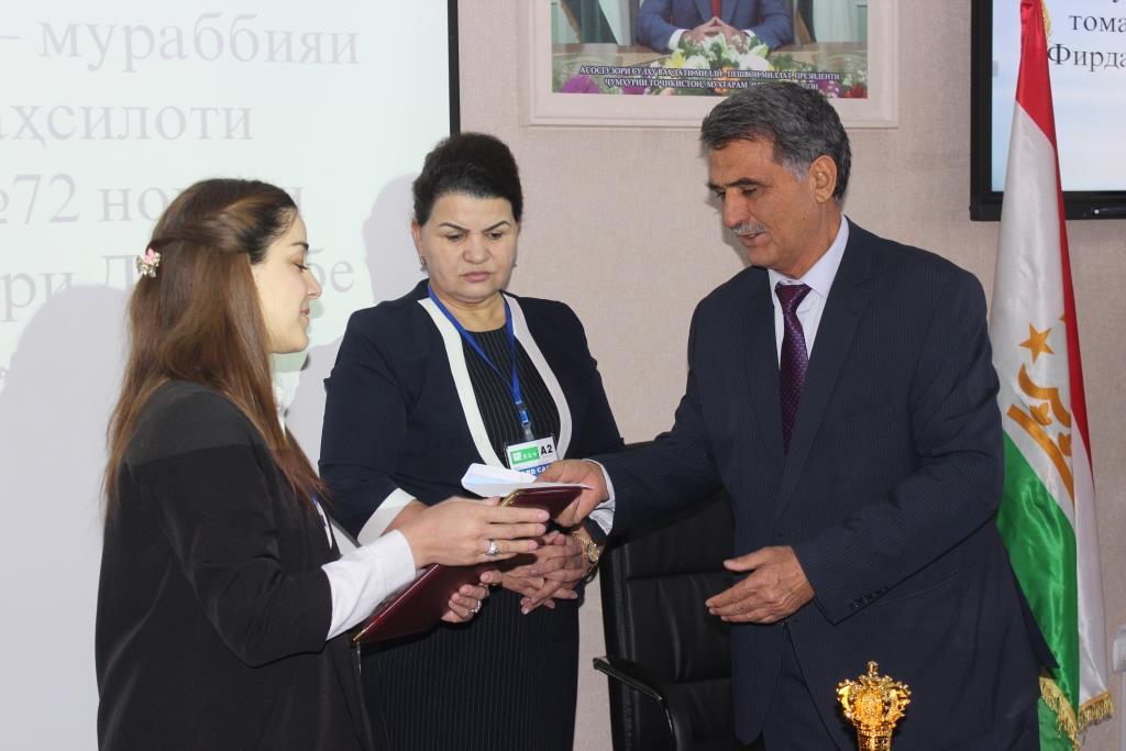 Ғолибон аз ҷониби Вазорати маориф ва илми Ҷумҳурии Тоҷикистон ва Иттифоқҳои касабаи кормандони маориф ва илми Ҷумҳурии Тоҷикистон бо Ҷоиза, нишони “Аълочии маориф ва илми Ҷумҳурии Тоҷикистон”, ифтихорнома, роҳхат барои осоишгоҳ ва мукофоти пулӣ сарфароз гардонида шуданд.