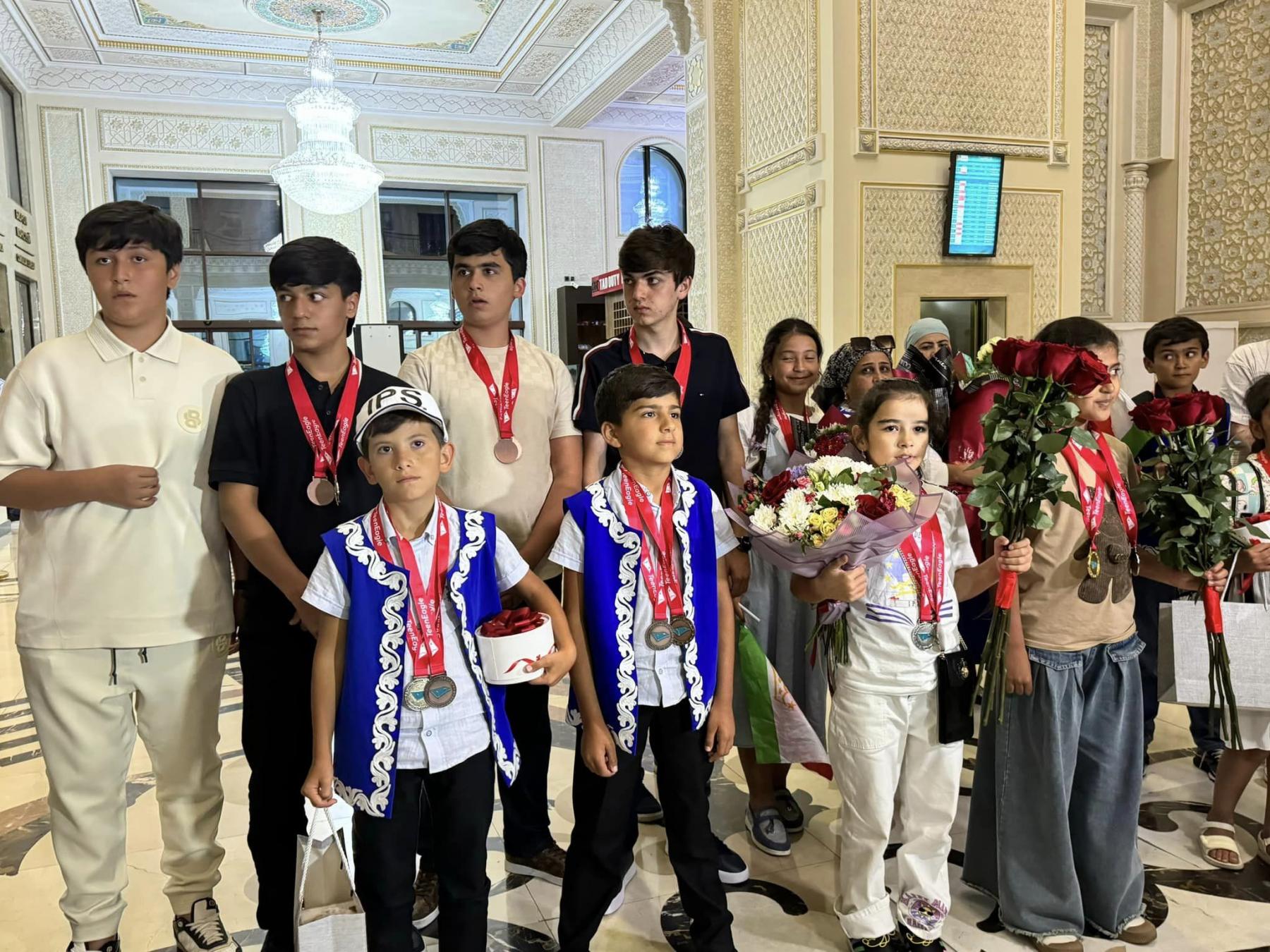 Дар Фурӯдгоҳи байналмилалии шаҳри Душанбе пешвози ғолибони Олимпиадаи байналмилалии «TEENEAGLE» аз фанни забони англисӣ сурат гирифт.