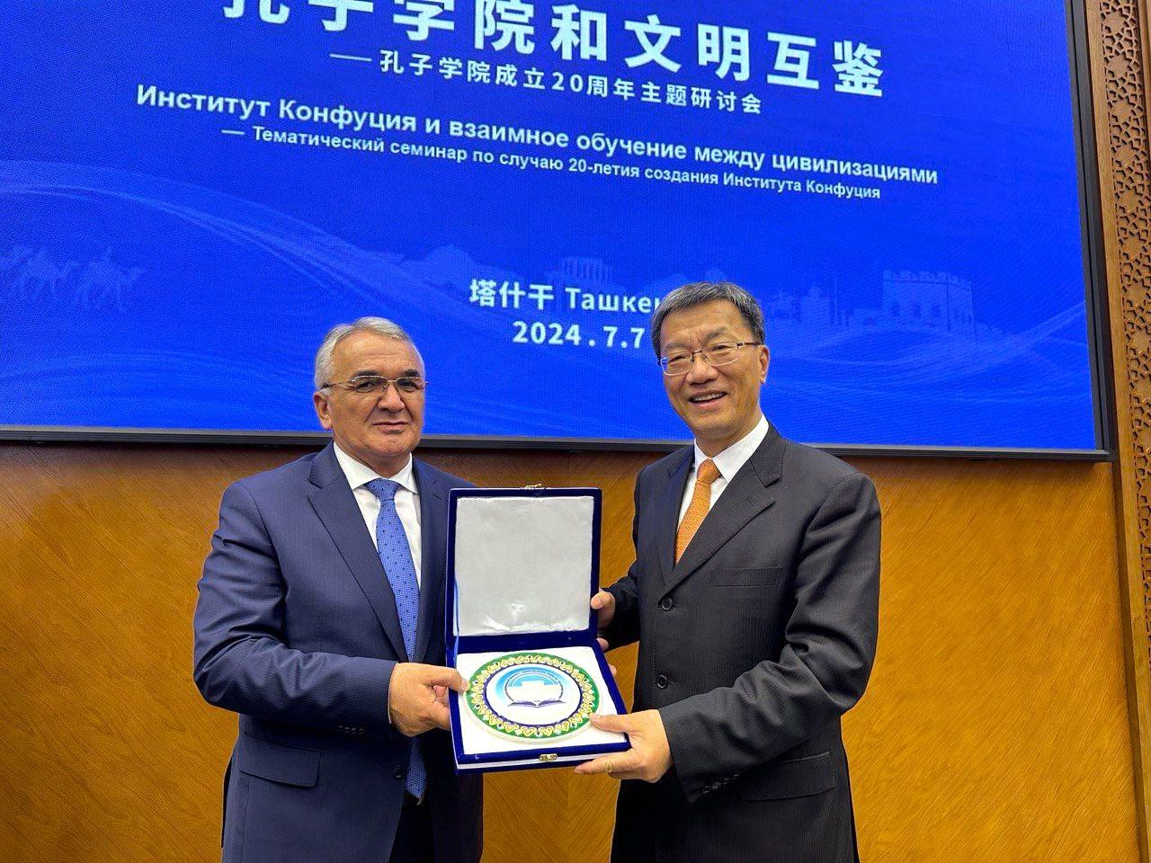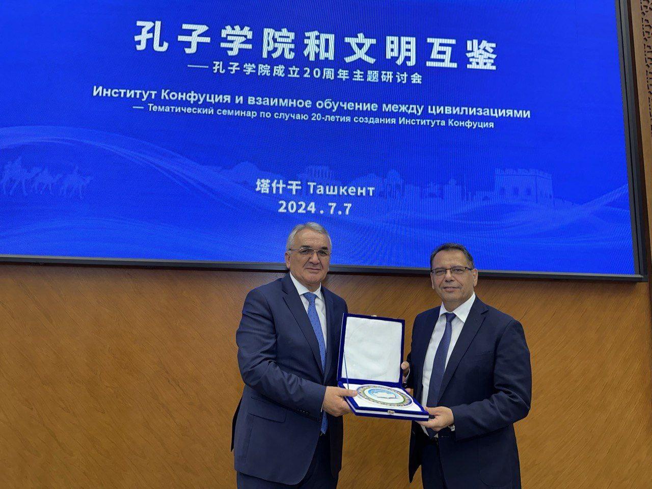 Дар робита ба ин, санаи 07-уми июли соли 2024 ректори Донишгоҳи миллии Тоҷикистон, профессор Насриддинзода Эмомалӣ Сайфиддин дар ҳамоиши илмии “Донишкадаи Конфутсий ва омӯзиши мутақобилаи тамаддунҳо”, ки ба истиқболи 20 солагии таъсисёбии Донишкадаи Конфутсийи назди Донишгоҳи давлатии шарқшиносии Тошканди Ҷумҳурии Узбекистон дар сатҳи баланд баргузор гардид, ширкат ва суханронӣ намуд. Дар чорабинии мазкур Раиси Сенати Маҷлиси Олии Ҷумҳурии Узбекистон Танзила Норбоева, аъзои Кумитаи доимии Бюрои сиёсии Анҷумани 21 Кумитаи Марказии Ҳизби Коммунистии Ҷумҳурии Мардумии Чин, Раис ва котиби ҳизбии кумитаи доимии 19-умин Маҷлиси умумичинии намояндагони халқ Ҷао Лэҷи, вазири маориф, илм ва инноватсияи Ҷумҳурии Узбекистон К.А. Шарипов, вазири маорифи Ҷумҳурии Мардумии Чин Хуай Ҷинпэн, муовини раис ва Котиби калони Фонди байналмилалии таълимоти забони чинӣ Ҷао Ҷиншан, муовини директори генералии Маркази ҳамкориҳои байналмилалии Чин бо хориҷи кишвар дар соҳаи забони назди Вазорати маорифи Чин Ху Ҷинпин, Котиби генералии кумитаи ҳизбии Донишгоҳи Ланҷоу Ма Сяозе, Ректори Донишгоҳи шарқшиносии Тошканд Рихсиева Г.Ш., ректори Донишгоҳи миллии Тоҷикистон, профессор Насриддинзода Э.С. ва як қатор роҳбарону намояндагони муассисаҳои дахлдори кишварҳои Осиёи Марказӣ ширкат намуданд.