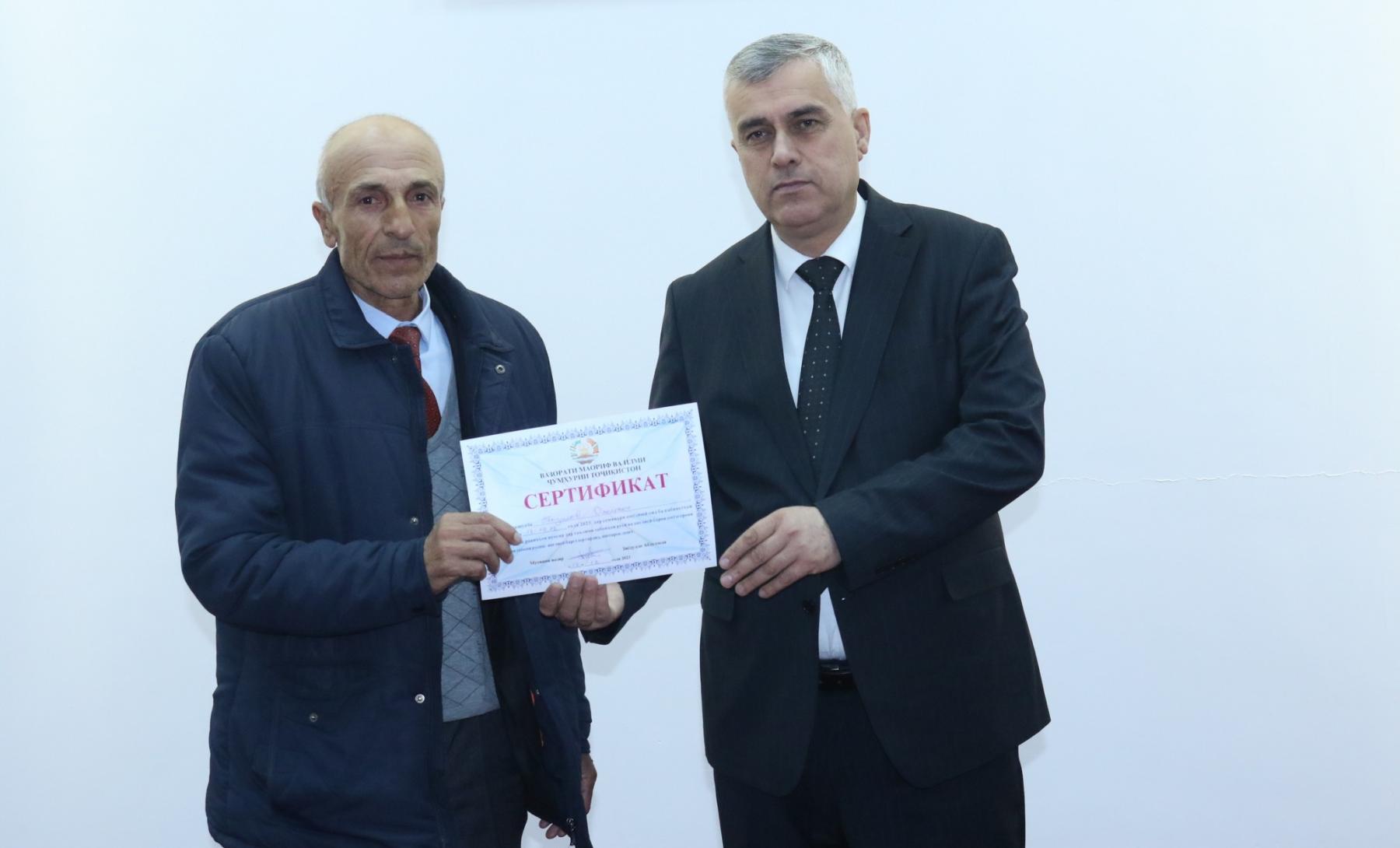 Дар охир ба иштирокчиёни семинар аз ҷониби Вазорати маориф ва илм сертификат тақдим гардид.