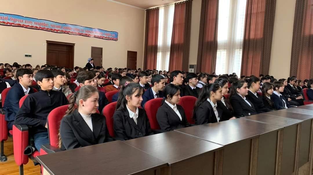 Бахшида ба эълон гардидани соли 2024 ҳамчун "Соли маърифати ҳуқуқӣ" бо иштироки муовини раиси шаҳри Хуҷанд Муяссара Қаҳҳорӣ, мудири бахши кор бо ҷавонон ва варзиш, сармутахассиси шуъбаи кор бо занон ва оила, мудири шуъбаи маориф, намояндагони тандурустӣ, кор бо ноболиғони ШВКД дар шаҳр дар мавзуҳои Паёми Пешвои миллат-Роҳнамои ҷавонон, пешгирии шомилшавии ҷавонон ба ҳаргуна ҳизбу ҳаракатҳои ифротӣ, даъвати ҷавонони синни даъватӣ ба сафи Қувваҳои мусаллаҳи Ҷумҳурии Тоҷикистон, иҷрои Қонуни Ҷумҳурии Тоҷикистон дар бораи "Танзими анъана ва ҷашну маросим дар Ҷумҳурии Тоҷикистон" дар гимназияи №1 ба номи Раҳим Ҷалил бо омӯзгорон, хонандагон ва волидайни онҳо вохӯрӣ ташкил ва гузаронида шуда, аз тарафи масъулин вобаста ба мавзуҳои болозикр маърӯзаҳо ироа гардид.