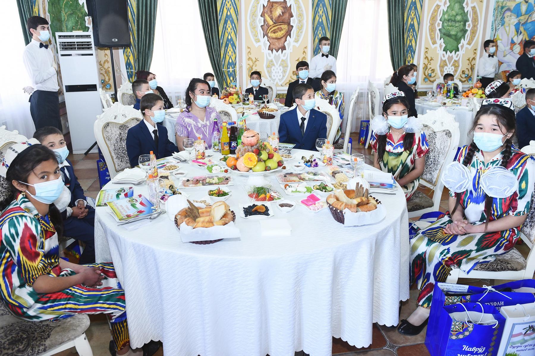 Дар идомаи боздиди кории худ аз шаҳри Истаравшан Асосгузори сулҳу ваҳдати миллӣ – Пешвои миллат, Президенти Ҷумҳурии Тоҷикистон муҳтарам Эмомалӣ Раҳмон дар Чойхонаи “Чаманоро”-и маркази шаҳр ба 110 нафар кӯдакони ятиму бепарастор ва аз оилаҳои камбизоат тӯҳфаҳои идонаи наврӯзӣ тақдим намуда, бо онҳо суҳбати самимӣ оростанд.