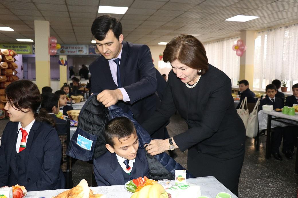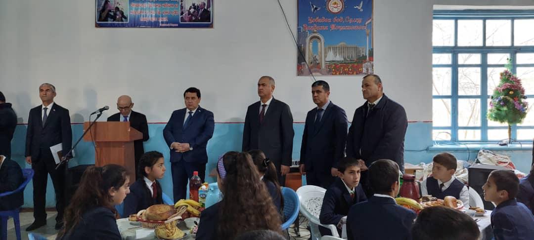 Нахуст, муовини Сарвазири Ҷумҳурии Тоҷикистон Матлубахон Сатториён тамоми хонандагонро аз номи Пешвои миллат, муҳтарам Эмомалӣ Раҳмон бо Соли нави мелодии 2022 муборакбод гуфта, дар рӯзгору таҳсили минбаъдаашон бурдбориҳо таманно намуд. Сипас, ба 220 нафар хонандаи Мактаб-интернати мазкур либосҳои зимистона ва тӯҳфаҳои солинавии Пешвои миллат супорида шуд.