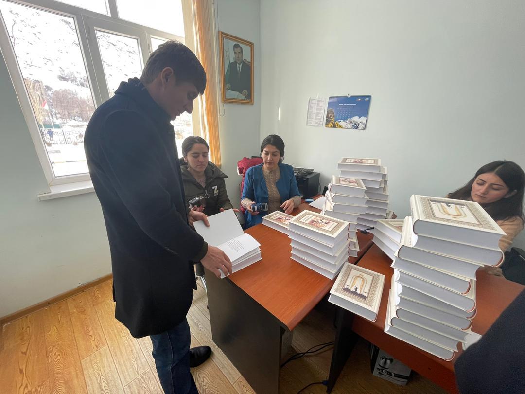 Зимни тақдим намудани ин асари гаронбаҳо, ки таърихи амиқи мардуми шарафманди тоҷикро бозгӯ мекунад, гурӯҳи кории ҳукуматӣ дар ҳайати намояндагон аз Дастгоҳи иҷроияи Президенти Ҷумҳурии Тоҷикистон, вазоратҳои маориф ва илм, корҳои дохилӣ, Кумитаи давлатии амнияти миллӣ, Агентии омори назди Президенти Ҷумҳурии Тоҷикистон ва мақомоти иҷроияи маҳаллии ҳокимияти давлатии ноҳияи Роштқалъа бо роҳбарии Нуралӣ Собирзода-муовини вазири маориф ва илм ширкат намуданд.
