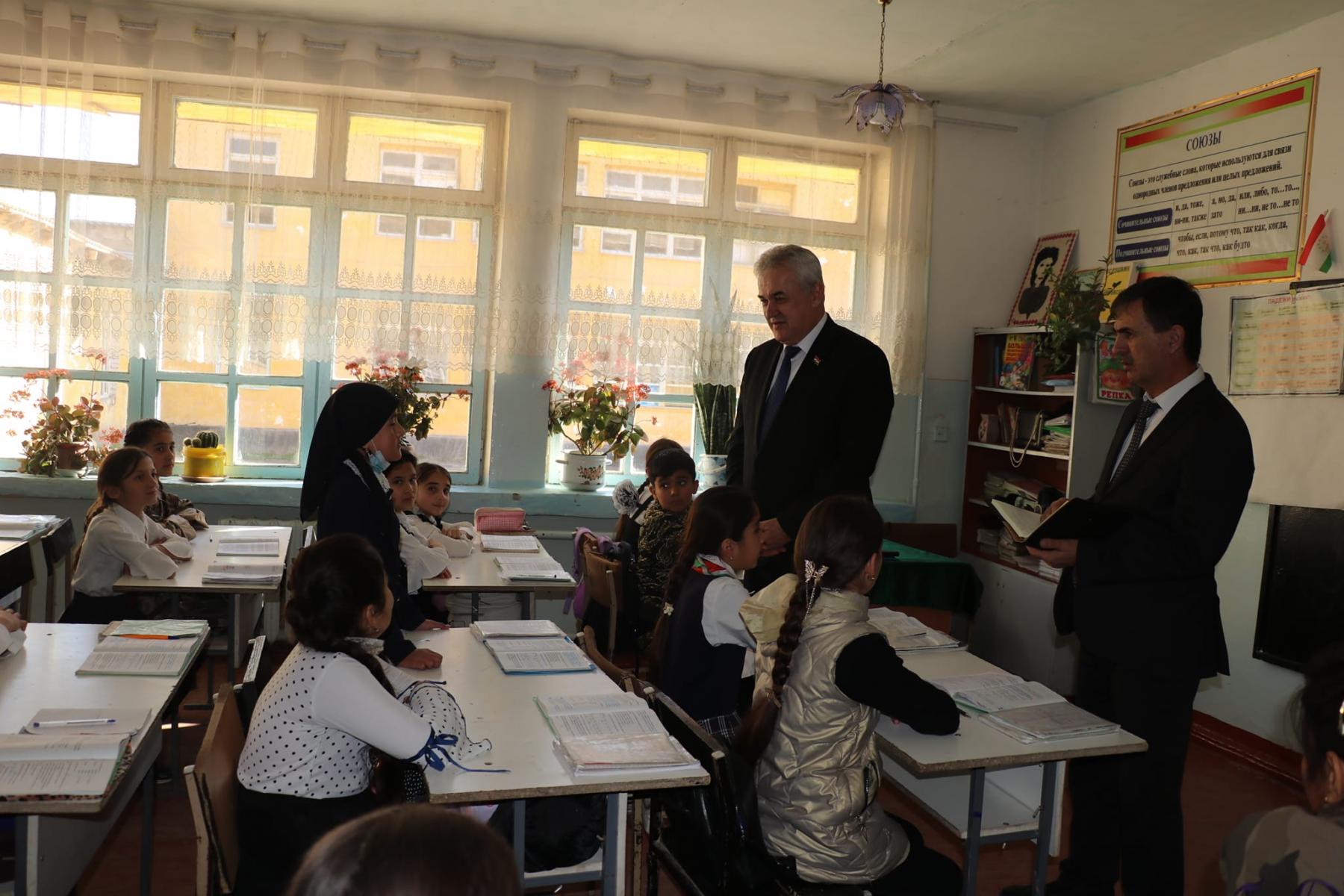 Дар синфи 5 "Ғ" аз 38 нафар хонанда 34 нафар дар дарс иштирок дошта, машғулиятҳо дар синфҳо тибқи ҷадвали дарсӣ ҷараён дошт. Суҳбат бо хонандагон нишон дод, ки дониши забонии онҳо дар сатҳи зарурӣ қарор надошта, бо забонҳои хориҷӣ дар сатҳи зарурӣ суҳбат карда наметавонанд. Вазири маориф ва илм маҳз ба ҳамин масъала таваҷҷуҳи омӯзгорону масъулинро ҷалб намуда, қайд кард, ки ислоҳи ин камбудӣ ва баланд бардоштани дониши забонии хонандагон масъулияти дучандро тақозо мекунад.