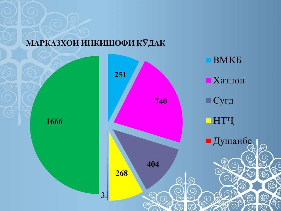 Дар баробари муассисаҳои таҳсилоти томактабӣ дар ҷумҳурӣ 1 666 адад Маркази инкишофи кӯдак бо фарогирии 45 476 кӯдак фаъолият менамояд, ки нисбат ба соли 2017-ум шумораи кӯдакон 1810 нафар зиёд мебошад.