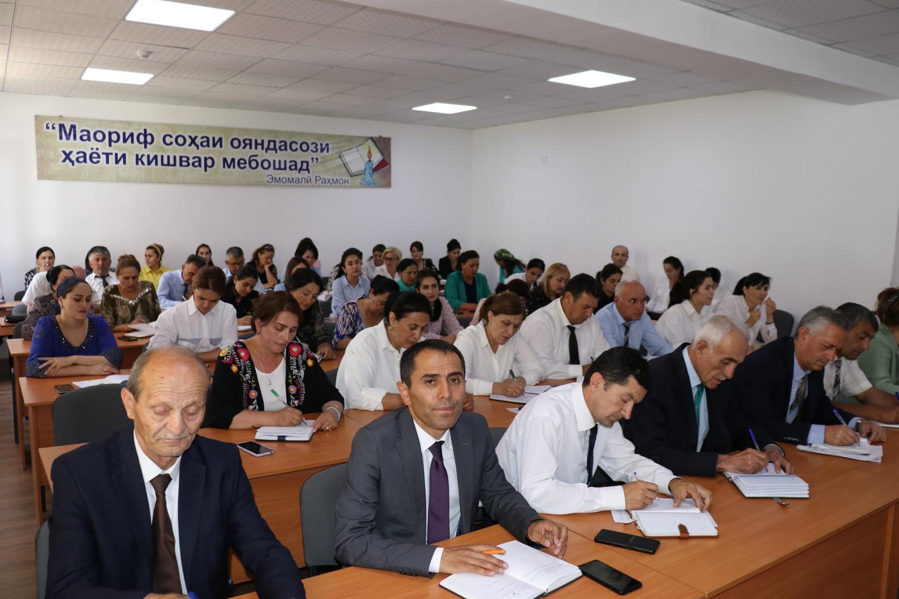 Дар охир, бори дигар муовини вазир доир ба иҷрои дастуру супоришҳои Пешвои муаззами миллат, муҳтарам Эмомалӣ Раҳмон дар самти омоданамоии мутахассисони босаводу донишманд, истифодаи усулҳои нави таълим ҷиҳати баланд бардоштани сифати таҳсилот, таваҷҷуҳи махсус зоҳир намудан ба омӯзиши забони давлатӣ ва забонҳои хориҷӣ, истифодаи технологияи муосир дар раванди таълим, аз ҷумла истифодаи тахтаҳои электронӣ, таъмини муассисаҳо бо китобҳои дарсию озмоишгоҳҳои таълимӣ ёдовар шуда, ҳамзамон, зикр кард, ки аз ҷониби Вазорати маориф ва илми Ҷумҳурии Тоҷикистон, бевосита вазири маориф ва илм Саидзода Раҳим Ҳамро ҷиҳати баланд бардоштани мақоми омӯзгор дар ҷомеа, татбиқи барномаҳои давлатӣ дар самти муҷаҳҳазгардонии кабинетҳои фаннӣ ва озмоишгоҳҳои таълимӣ, таъминот бо компютеру тахтаҳои электронӣ, пешбинӣ намудани имтиёзҳо ба омӯзгорон, баланд бардоштани сифати таҳсилот ва чанде дигар як қатор тадбирҳои судманд роҳандозӣ гардида истодааст. Аз ин рӯ, омӯзгоронро зарур аст, ки ҷавобан ба ғамхориҳои давлату Ҳукумат, Пешвои муаззами миллат ва Вазорати маориф ва илм фаъолияти дучанд намуда, дар самти баландбардории сифати таҳсилот, бо истифода аз касбият ба роҳ мондани дарсҳои самарабахш ва омода намудани мутахассисони варзида, тарбияи насли наврас дар рӯҳияи худшиносию ватандӯстӣ, саҳм гузоштан дар корҳои ободонӣ ва чанде дигар саҳми шоиста гузоранд.