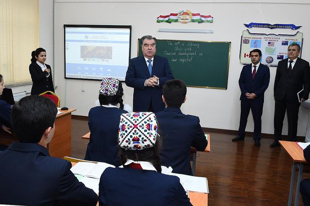 Сарвари давлат муҳтарам Эмомалӣ Раҳмон зимни шиносоӣ бо шароити муҳайёгардида дар ин муассисаи таълимӣ бо хонандагони хуштолеъ, ки имрӯз соҳиби туҳфаи арзандаи Пешвои миллат - мактаби нав гардиданд, суҳбати самимӣ доир карда, онҳоро ба хониши хубу аъло, аз худ кардани илму технологияи замонавӣ ҳидоят карданд. Хонандагон низ дар навбати худ ба Президенти мамлакат барои ҳамаи ғамхориҳо изҳори сипос карда, ваъда доданд, ки бо истифода аз тамоми шароитҳои таълим хубу аъло мехонанд.